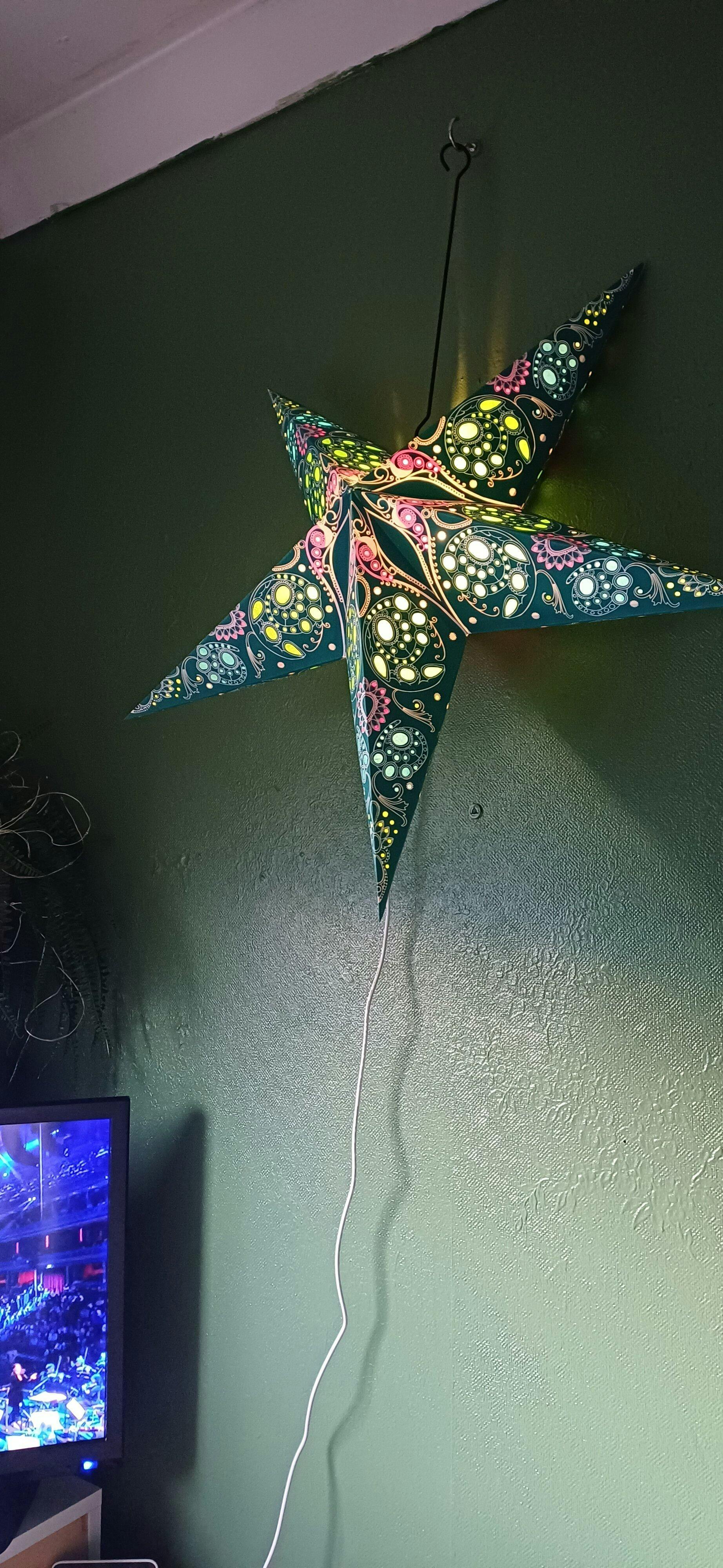All our stars fold flat and come with a strong cotton tie for easy hanging. Please note: lights sold separately.