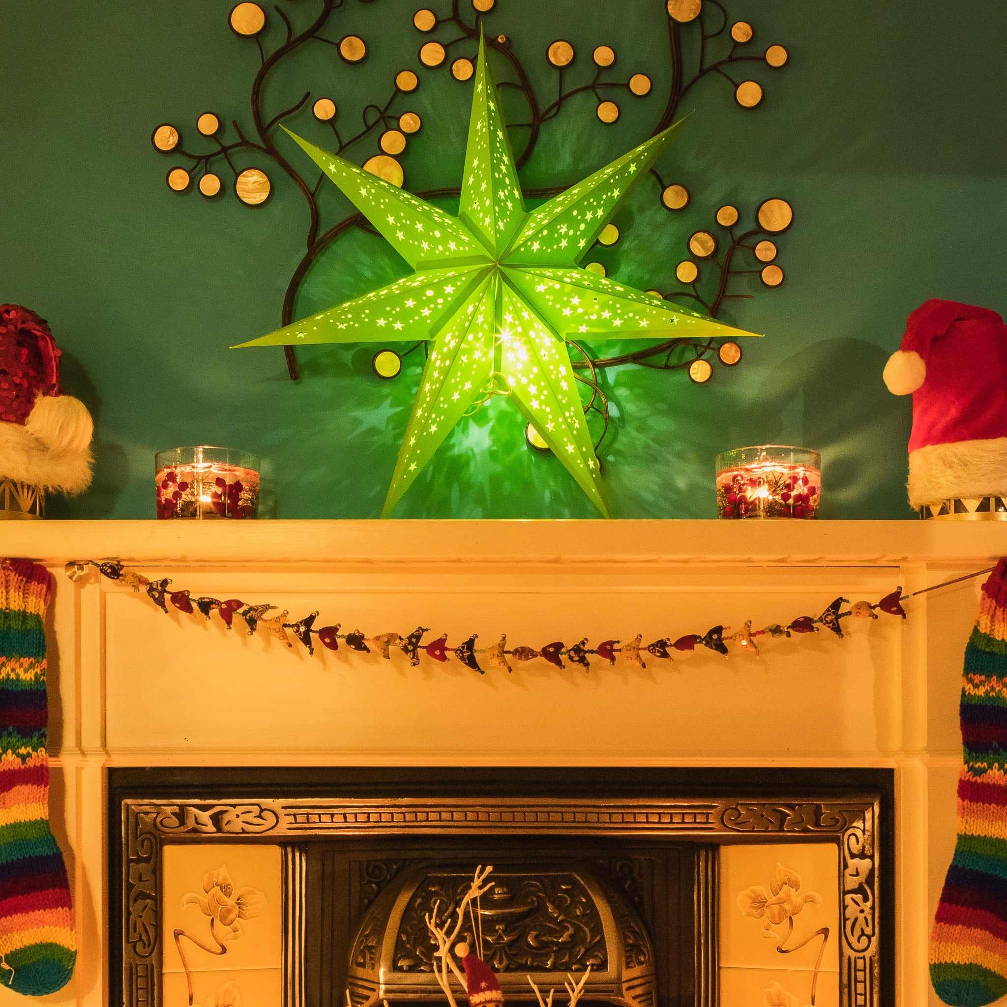 Bring the freshness of spring indoors with our vibrant Venus Green star lantern. With its rich green base and star-shaped hand cut perforations, this lantern casts magical projections of light and creates a stunning display of starry shapes across your space.