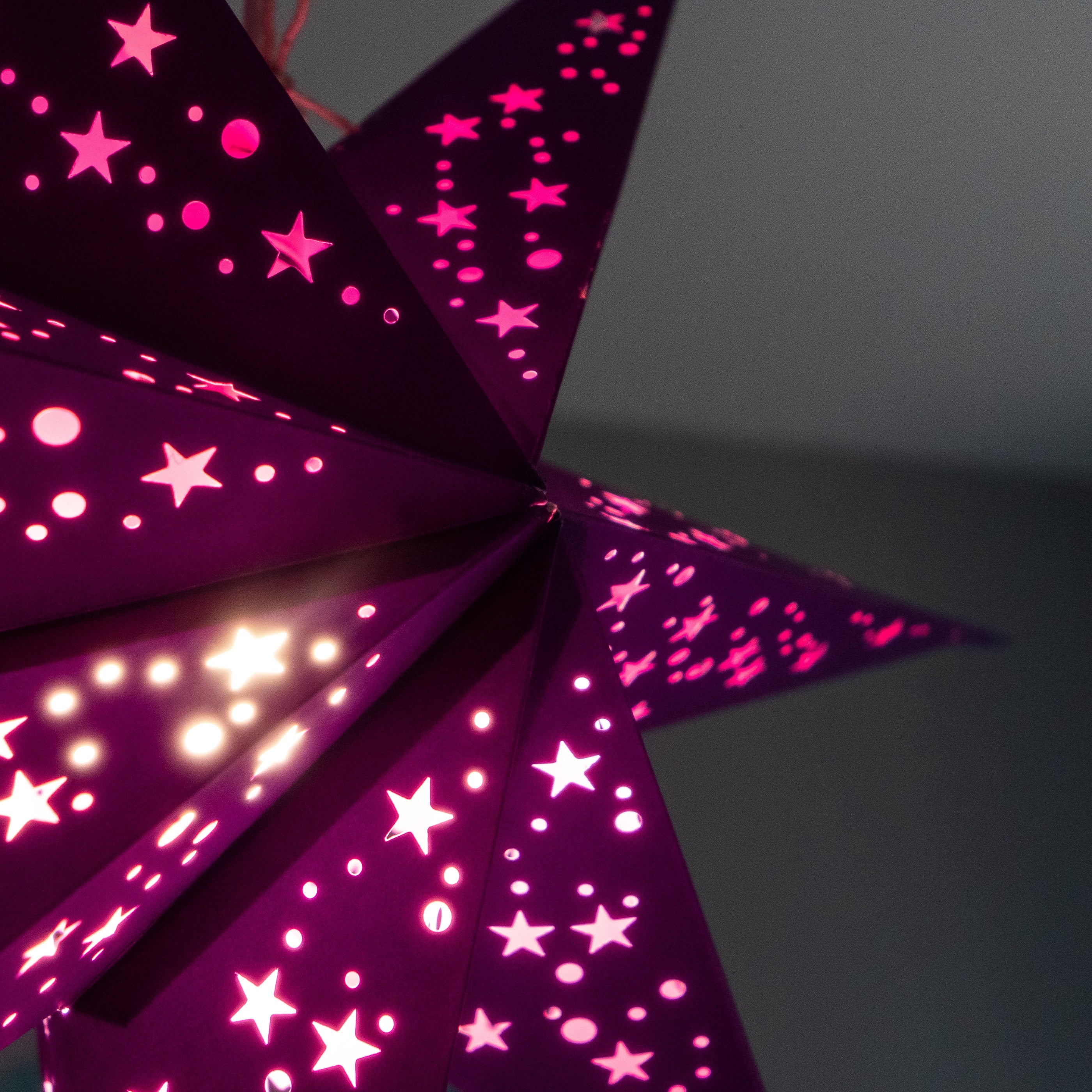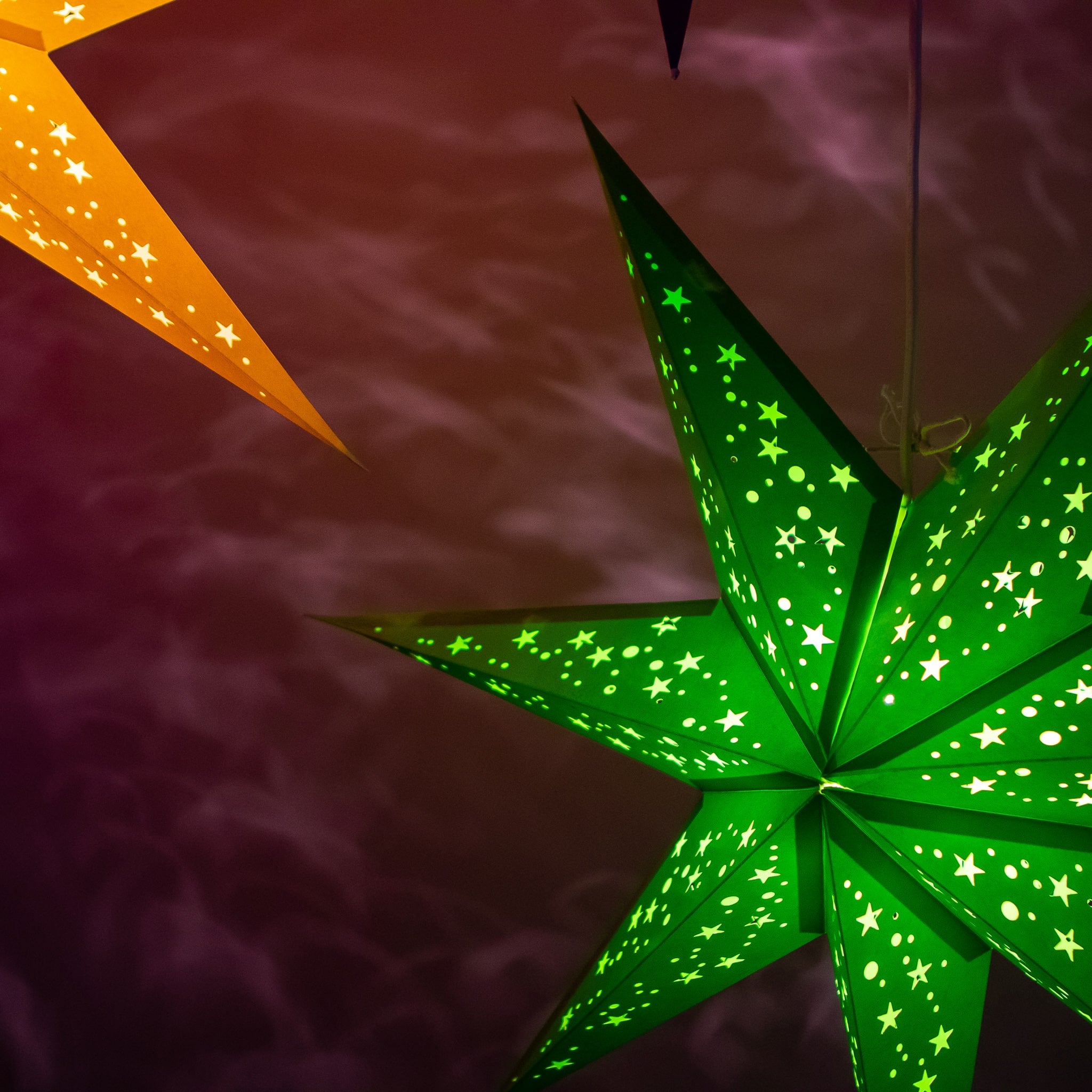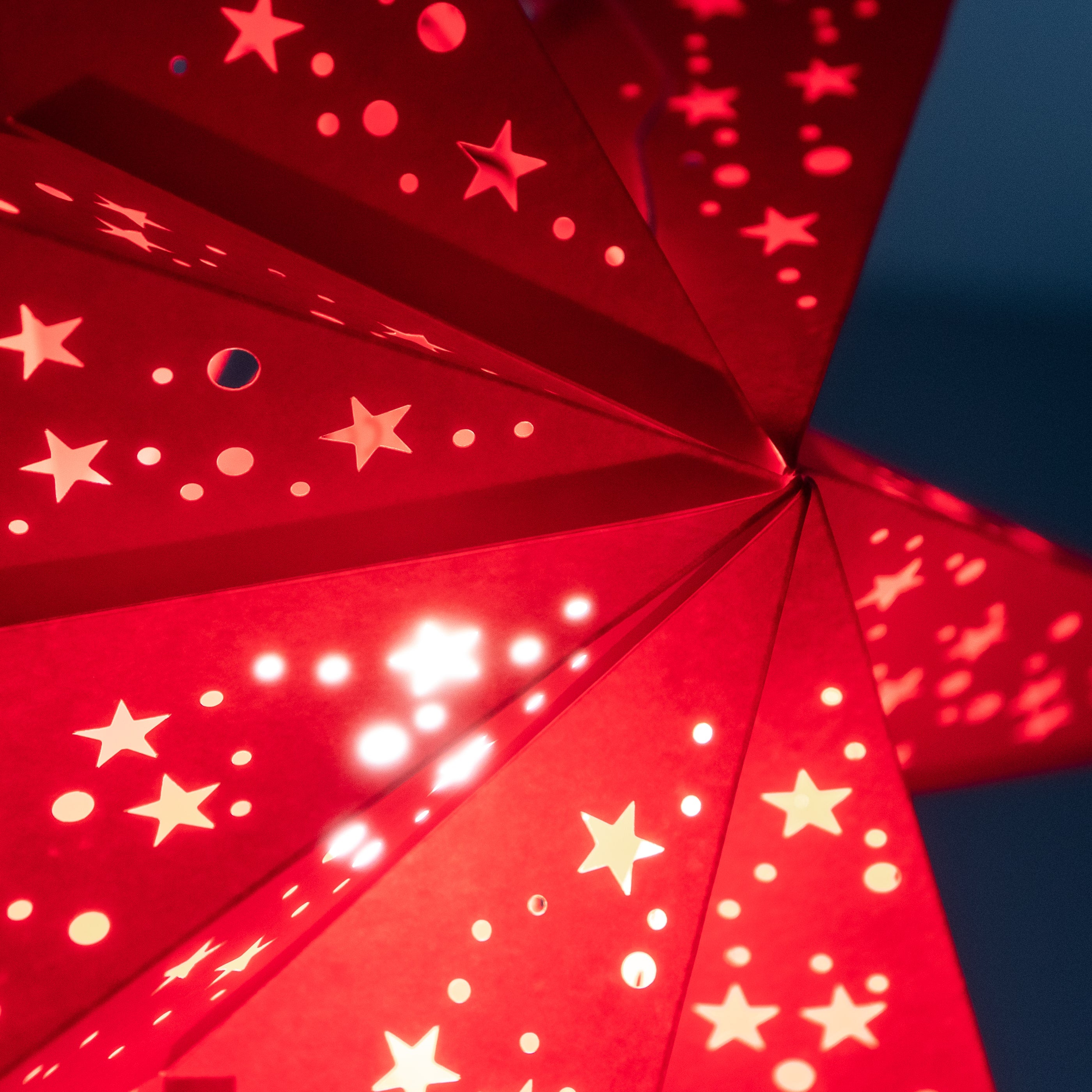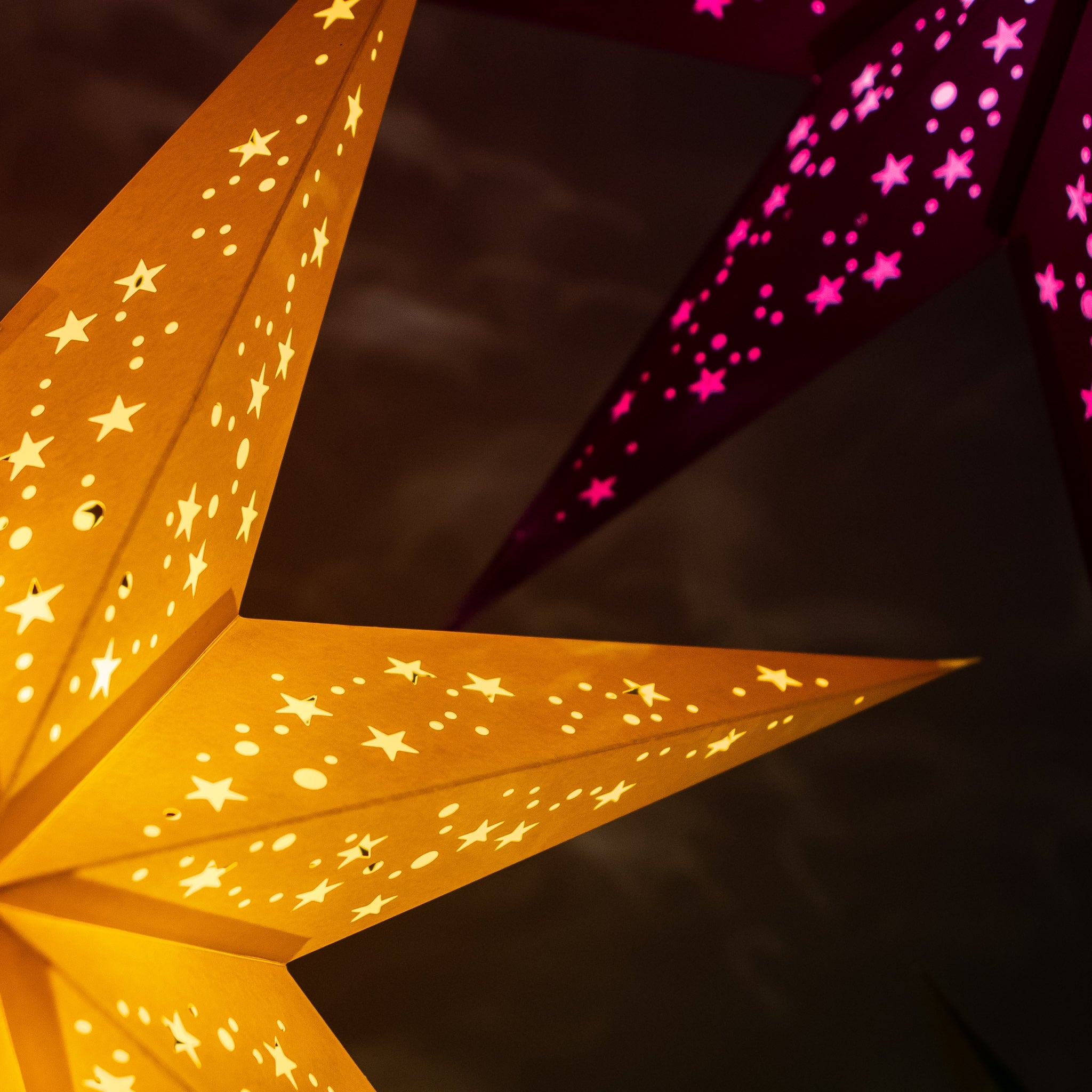 Handcrafted from sustainably sourced paper, these 60 cm star lanterns unfold to reveal radiant star patterns in five joyful colours: red, blue, green, yellow and purple. Hang them together for a show-stopping display or spread them across your home for a touch of starlit magic in every room.