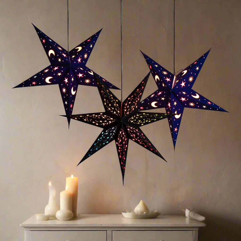 Turn a blank ceiling into a starlit sky. Group Paper Starlights in clusters to form canopies over reception areas, dining spaces, or dance floors. This adds warmth, scale, and wow-factor without permanent fixtures.