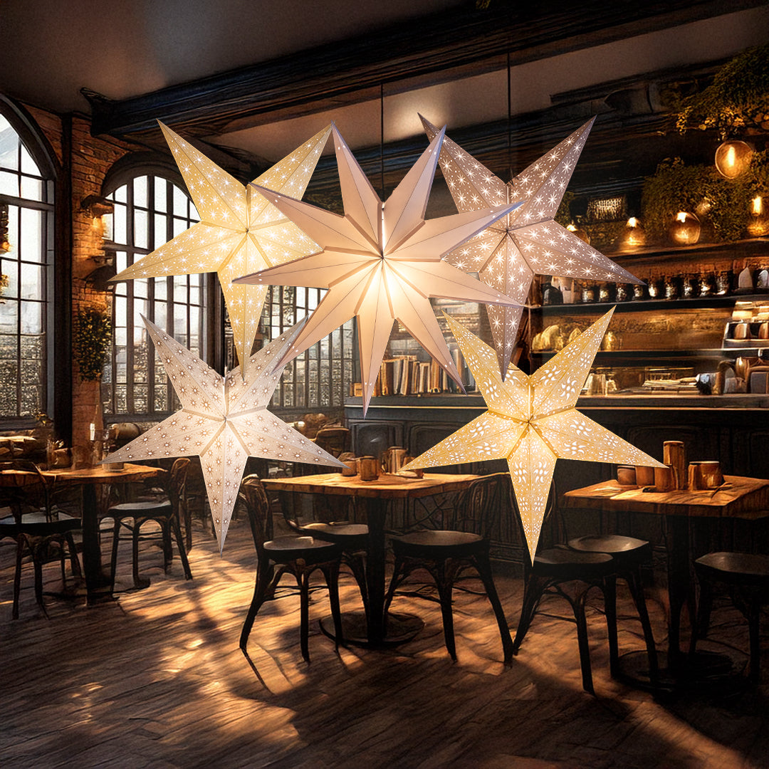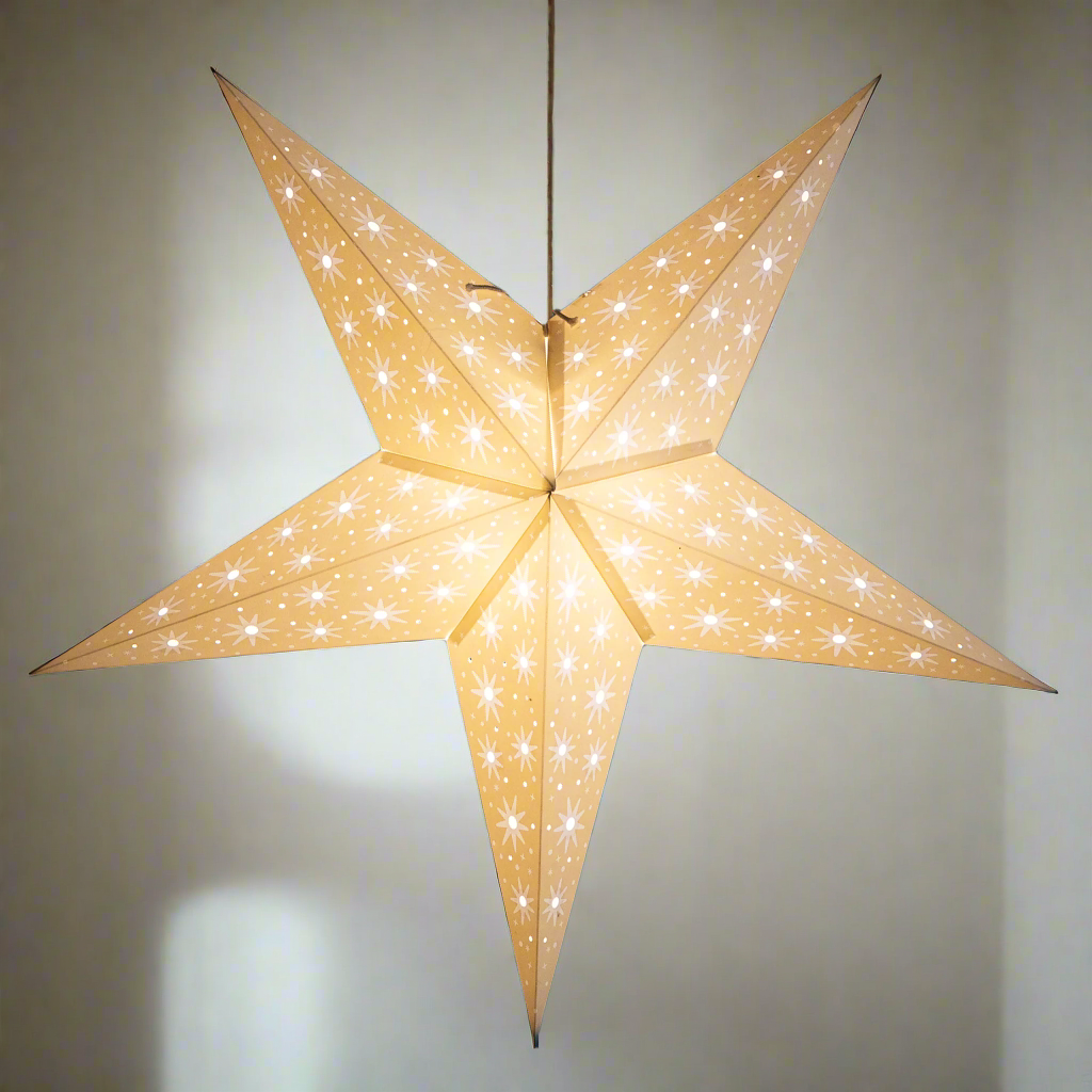 All our stars fold flat and come with a strong cotton tie for easy hanging. Please note: lights sold separately.